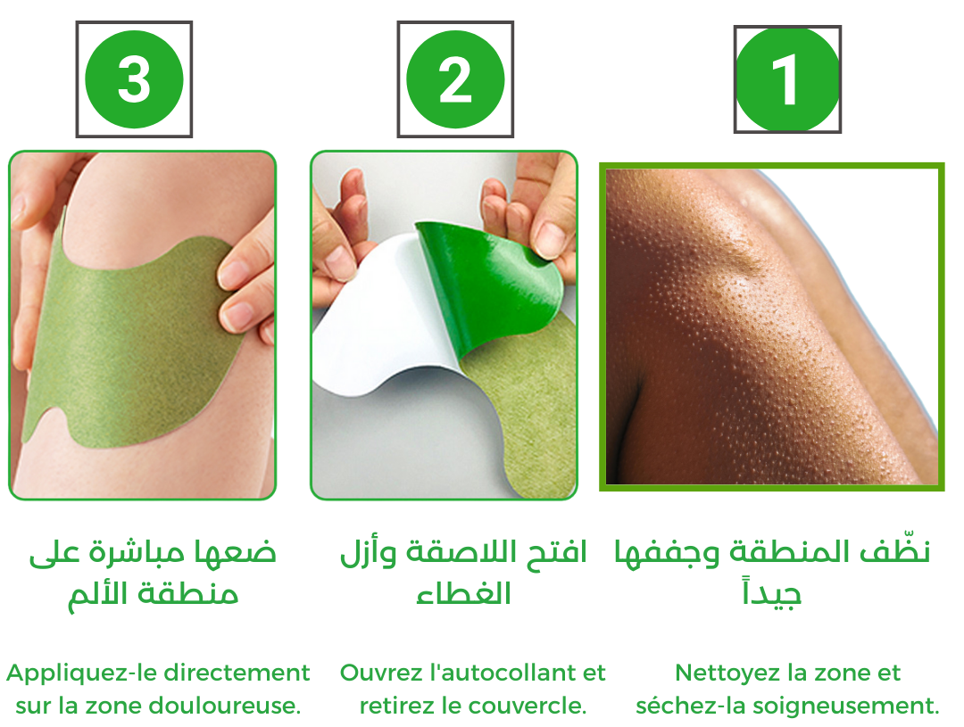لاصقات عشبية توضع مباشرة على منطقة الألم وتعمل من خلال:
